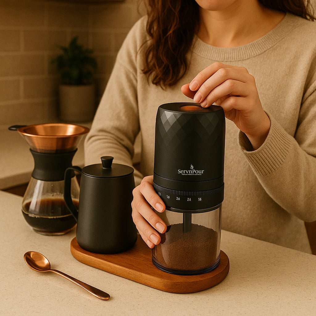 • Premium rechargeable coffee grinder with adjustable grind settings – Freshly grind your beans for the freshest, richest aroma and boldest taste.